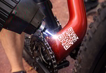 Sua bicicleta recebe um QR Code exclusivo, gravado a laser na parte inferior do quadro. Esse código é único e vinculado ao seu cadastro no aplicativo.