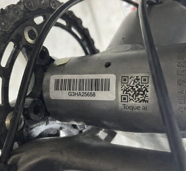 QR code gravado a laser no quadro. Se não tem código… desconfie. Se tem Toque Bike… tem dono.
